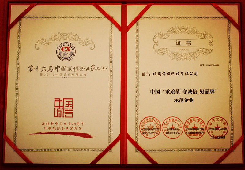 中国“重质量 守诚信 好品牌”示范企业