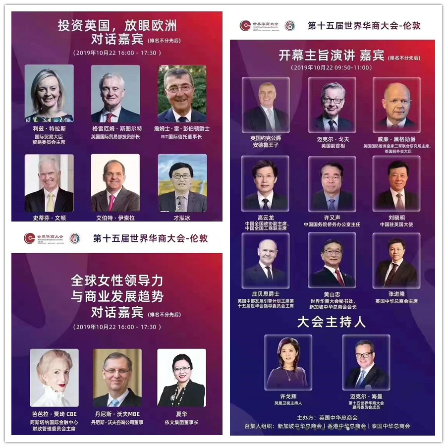 以“世界新格局,华商新机遇”为主题的第十五届世界华商大会22日至23日在伦敦举行。这是世界华商大会首次走进欧洲,在英国举行。