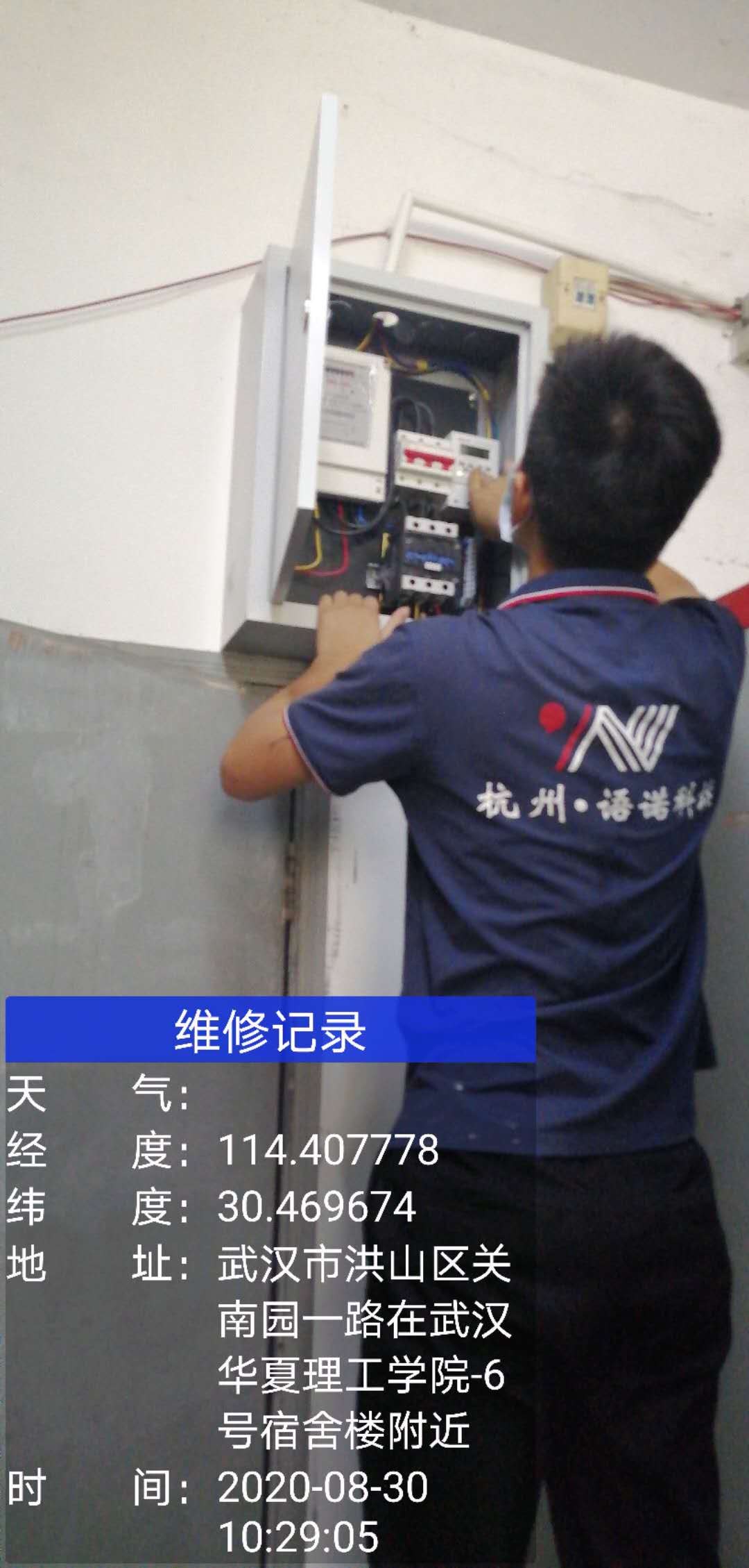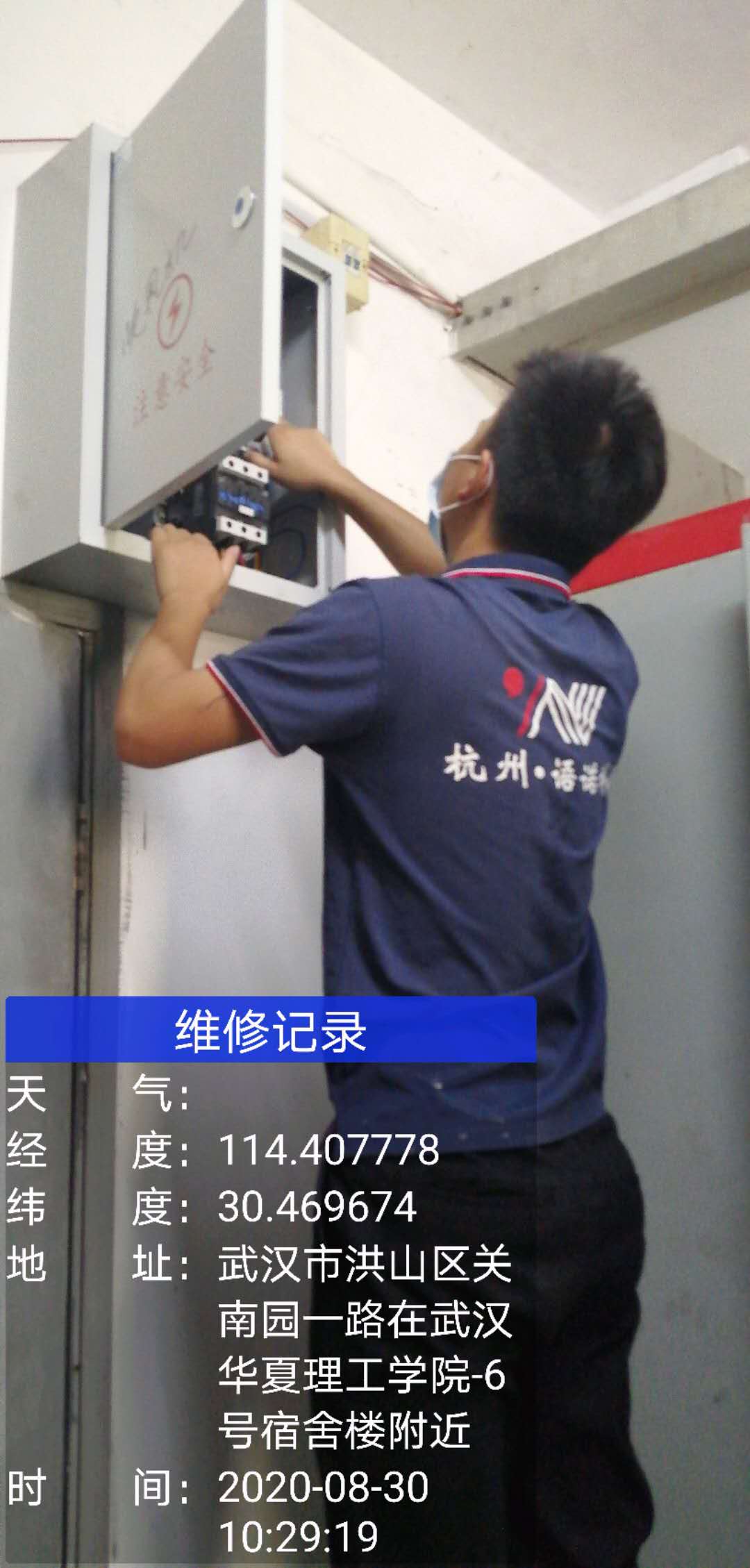 上图为:我公司维修人员在贵校维修现场