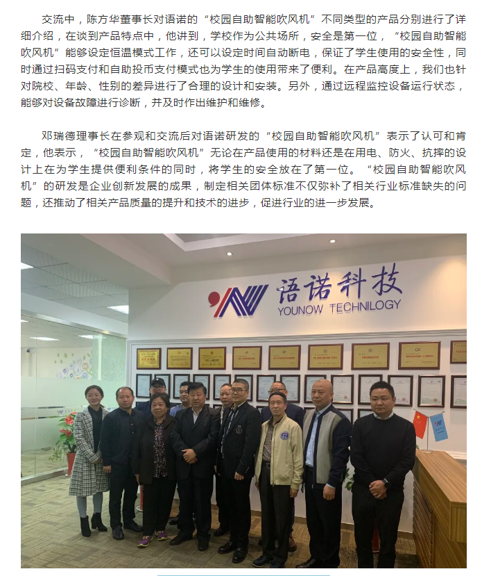 热烈欢迎参加《校园用自助智能吹风机技术规范》等3项标准第二次讨论会的各位领导/专家/及企业代表莅临本公司交流指导