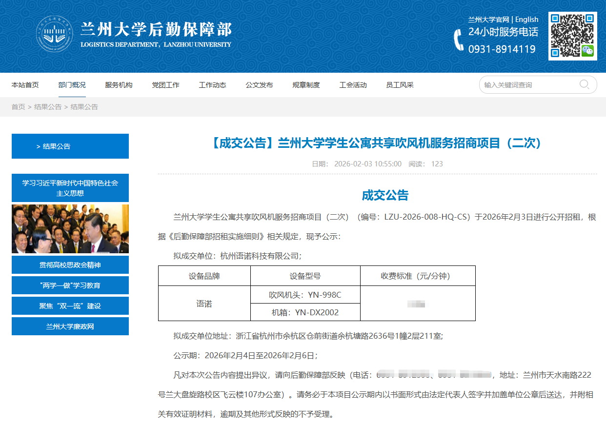 热烈祝贺,我公司再次中标兰州大学校园共享吹风机项目
